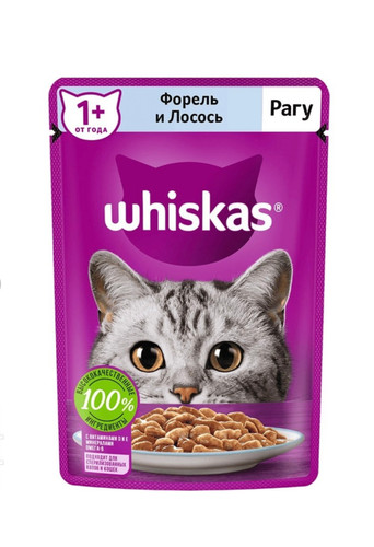 پوچ گربه ویسکاس با طعم ماهی قزل آلا و سالمون Whiskas Pouch With Trout And Salmon وزن 75 گرم
