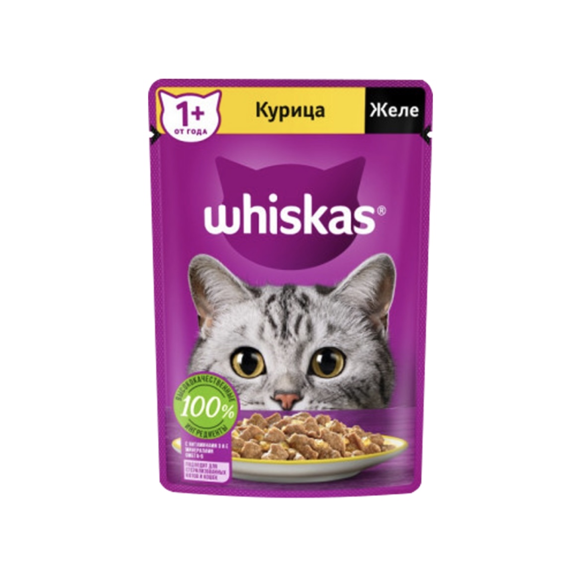 پوچ گربه ویسکاس با طعم مرغ Whiskas Chicken In Jelly وزن 75 گرم